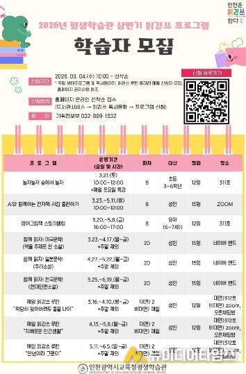인천광역시교육청평생학습관은 오는 4일부터 ‘상반기 읽걷쓰 프로그램 학습자’를 모집한다.