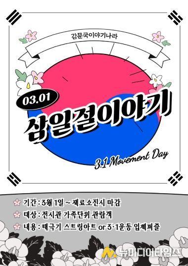 김천시시설관리공단(이사장 김재광)은 2026년 3·1절을 맞아 감문국이야기나라 전시관에서 가족 단위 관람객이 함께 참여할 수 있는 3·1절 기념 체험프로그램 ‘삼일절이야기’를 운영한다. 이번 프로그램은 3월 1일부터 재료 소진 시까지 전시관 운영시간 내 진행된다.