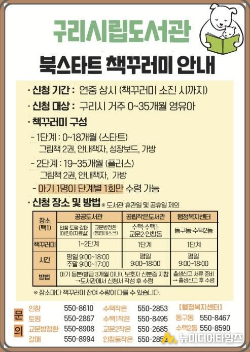 백경현 구리시장은 “북스타트 사업은 단순히 책을 나눠주는 것을 넘어, 아이가 태어나 처음 만나는 친구로서 책을 친근하게 여기고 독서 습관을 기를 수 있는 첫 발판이 될 것”이라며 “많은 가정에서 책꾸러미를 통해 독서의 즐거움을 발견하길 바란다”라고 말했다.