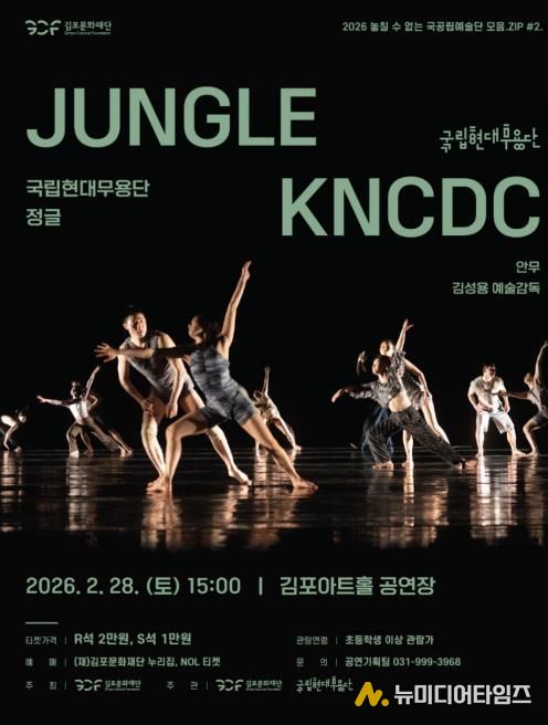 (재)김포문화재단은 지난 2월 28일 오후 3시 김포아트홀에서 개최한 국립현대무용단 '정글' 공연이 객석점유율 93% 이상을 기록하며 성황리에 막을 내렸다고 밝혔다.