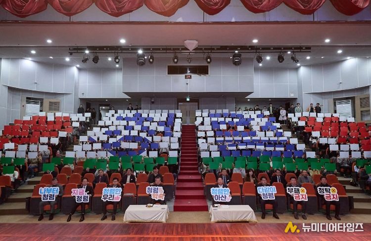 아산시 감사위원회(위원장 김점균)는 3일 오전 아산시청 시민홀에서 청렴 선포식과 공직자 청렴교육을 개최하고 청렴 실천 의지를 대내외에 선언했다.