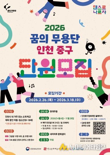 (재)인천중구문화재단(이사장 김정헌)은 2026 꿈의 무용단 ‘인천 중구’의 신규 단원을 모집한다고 4일 밝혔다.