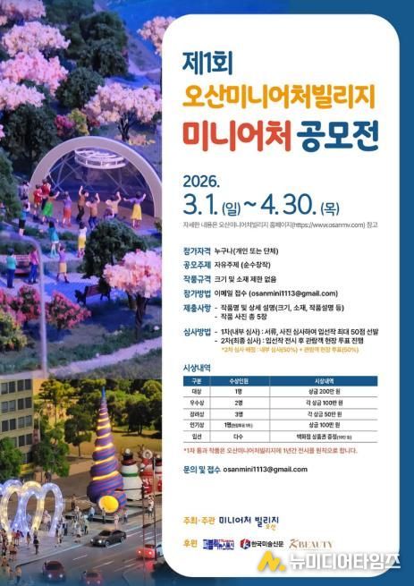 오산미니어처빌리지 관계자는 “이번 공모전은 단순 관람을 넘어 창작자의 상상력과 이야기가 전시의 일부가 되는 참여 중심 운영의 첫걸음이 될 것”이라며 “가장 작은 세계 속에서 피어나는 가장 큰 기적의 순간들을 전국의 많은 창작자와 함께 나누길 기대한다”고 말했다.