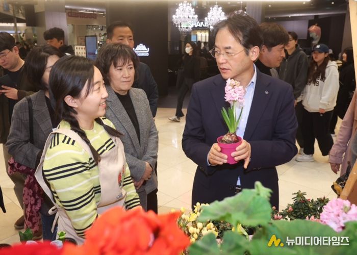 이동환 고양특례시장이 지난 1일 오후, 스타필드 고양점에서 열리고 있는 ‘고양 화훼농가 돕기 플라워 팝업스토어’ 현장을 찾아 화훼 농업인들을 격려하고 지역 상생 협력 방안을 논의하는 시간을 가졌다.
