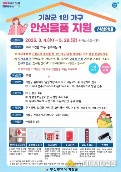 다만 2025년 기장군 1인 가구 안심물품 지원 사업 기수혜자는 제외된다.