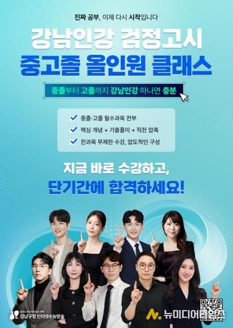 꿈이 모이는 도시, 미래를 그리는 강남구가 검정고시 수험생을 위한 온라인 교육 콘텐츠 ‘강남인강 검정고시 올인원 클래스’를 개강한다. 고졸 과정은 3월 9일부터 강남인강 홈페이지에서 수강할 수 있다.