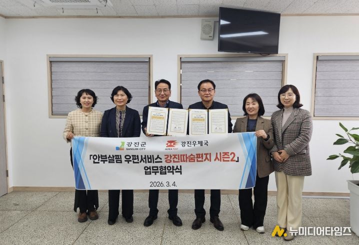 강진군이 작년에 이어 올해에도 행정안전부 공모사업 ‘2026년 읍면동 스마트 복지‧안전서비스 개선 모델 개발 지원사업’의 ‘안부살핌 우편서비스’ 부문에 선정돼 국비 1천만 원과 우체국공익재단 8백만 원을 포함한 총 2천 8백만 원 규모의 예산을 투입해 촘촘한 복지 안전망 구축에 나섰다.