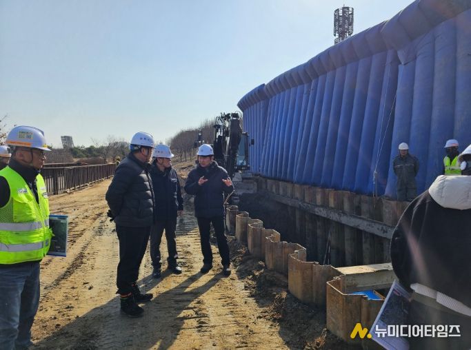 이번 점검은 기존 하루 4만 톤 규모의 하수처리 능력을 6만 8천 톤으로 확대하는 통진레코파크 2단계 증설 사업을 대상으로 진행했다. 현장에서는 하수처리장 구조물 공사 구간과 대형 차집관로 굴착 구간을 중심으로 흙막이 시설, 사면 안정성, 배수상태, 균열 발생여부 등을 집중 확인했다.