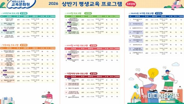 세종특별자치시교육청교육문화원(원장 이금의)은 3월 5일부터 3월 10일까지 2026년도 상반기 평생교육 프로그램 수강생을 모집한다.