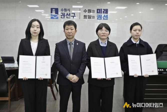 수원시 권선구는 지난 5일, 권선구청 2층 집무실에서 신규 공직자 3명이 참석한 가운데 임용장 수여식을 개최했다.