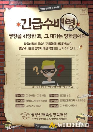 (재)평창인재육성장학재단이 지역 출신 대학생들의 등록금 전액과 생활비를 지원하는 전폭적인 지원책을 마련해‘2026년도 제1차 장학생 선발’에 나선다.
