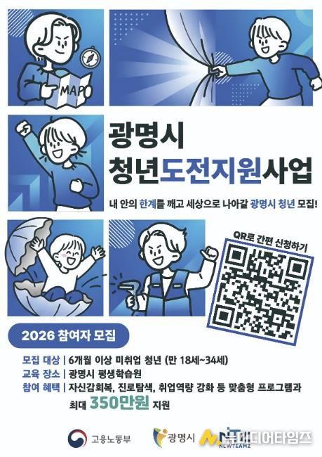 광명시가 구직에 어려움을 겪는 청년들의 사회 진출을 돕기 위해 오는 22일까지 ‘2026년 청년도전지원사업’ 참여자 78명을 모집한다.