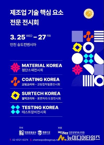 인천관광공사와 ㈜메쎄이상이 공동으로 주최하는 국내 대표 소부장(소재·부품·장비) 전문 전시회 ‘2026 고기능소재장비위크’가 오는 25일부터 27일까지 3일간 송도컨벤시아에서 개최된다.