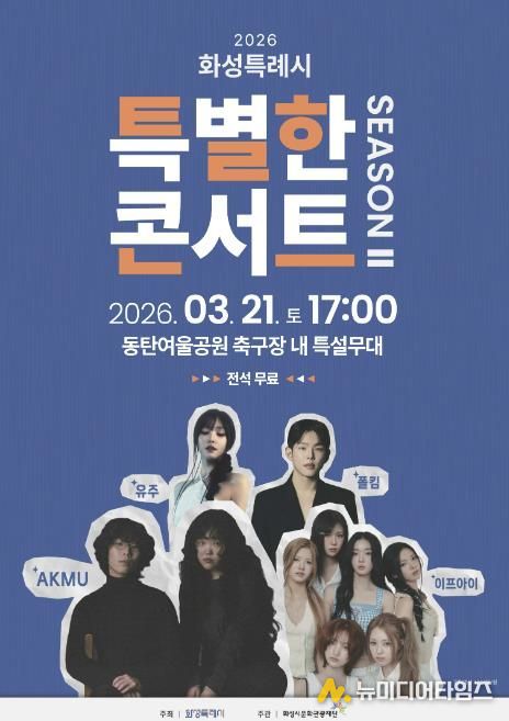 이번 콘서트는 ‘살고 싶은 도시, 머물고 싶은 도시’ 화성의 이미지를 확산하고, 특례시민으로서의 자긍심을 높이기 위한 시즌형 문화콘텐츠로 기획됐다. 대중적인 인지도를 갖춘 아티스트 라인업을 구성해 시민들에게 수준 높은 공연을 선보일 예정이다.