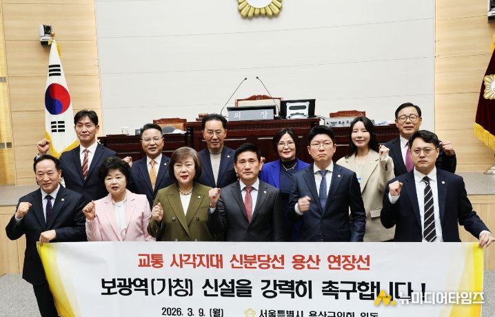 용산구의회는 3월 9일 열린 제305회 임시회 제1차 본회의에서 이미재 의원이 대표 발의한 ‘신분당선 용산 연장선 보광역(가칭) 신설 촉구 결의안’을 의원 전원 만장일치로 채택했다.