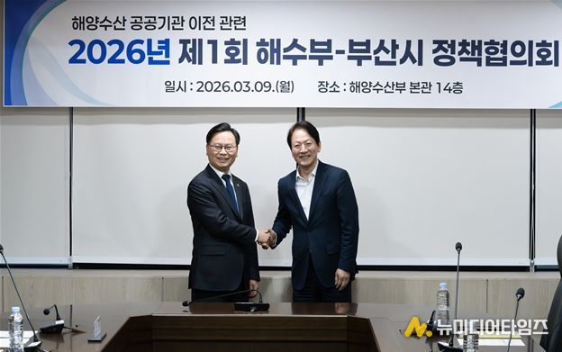 부산시는 9일 오후 4시 30분 동구 해양수산부 14층 회의실에서 해양수산 공공기관 부산 이전과 관련한 '제1회 부산시-해양수산부 정책협의회'를 개최했다고 밝혔다.