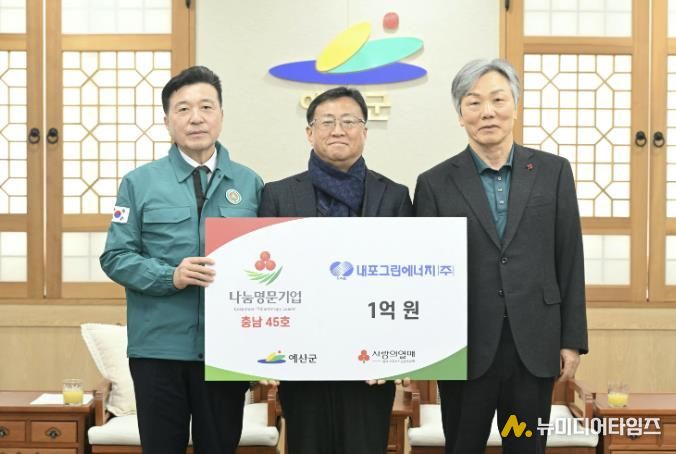예산군수는 “내포그린에너지㈜가 나눔명문기업에 가입해 지역사회 공헌에 앞장서 주신 데 깊이 감사드린다”며 “지역 기업이 보여준 선한 영향력이 지역사회를 더욱 따뜻하게 만드는 원동력이 되길 기대한다”고 말했다.