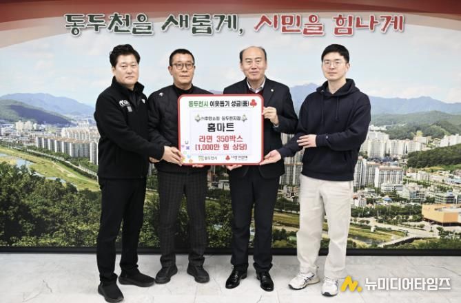 ㈜주양쇼핑 홈마트는 지난 9일 동두천시 관내 소외된 이웃을 돕기 위해 라면 350박스를 기탁했다.