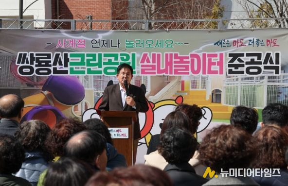 박강수 마포구청장은 3월 13일 오후 1시 30분, 쌍룡산근린공원(염리동 532-5)에서 열린 ‘쌍룡산근린공원 실내놀이터 조성사업 준공식’에 참석해 어린이와 가족을 위한 새로운 놀이공간의 조성을 축하했다.