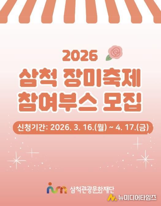 삼척관광문화재단은 3월 16일부터 4월 17일까지 ‘2026 삼척장미축제’를 함께할 참여부스를 모집한다고 밝혔다.