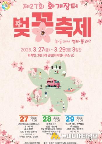 축제는 27일 오후 6시 개막식과 축하공연으로 화려하게 막을 열고, 연이어 28일 ‘벚꽃노래자랑’ 및 ‘벚꽃 DJ 뮤직 페스티벌’, 29일 ‘청소년 댄스 경연대회’ 등이 개최돼 다 같이 어우러지는 화합의 공간이 될 예정이다.