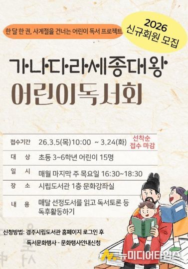 경주시 시립도서관은 어린이들에게 책 읽는 즐거움과 독서의 중요성을 알리기 위해 ‘가나다라 세종대왕 어린이 독서회’를 운영한다.