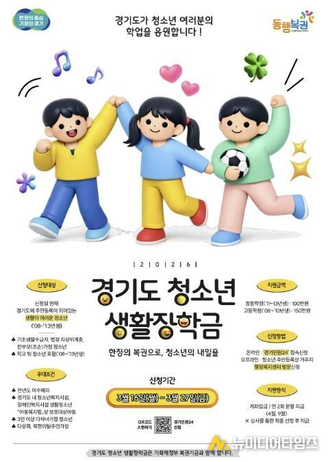 구리시는 오는 3월 16일부터 3월 27일까지경제적으로 어려운 청소년들의 학업 지속과 생활 안정을 지원하기 위해 오는 3월 16일부터 3월 27일까지 ‘2026년 경기도 청소년 생활장학금 지원사업’ 신청을 접수받는다.