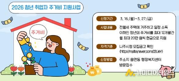 시 관계자는 “청년 취업자 주거비 지원을 통해 청년들이 안정적으로 지역에 정착하고 생활 기반을 마련하는 데 도움이 되길 기대한다”며 “청년들이 체감할 수 있는 다양한 청년 정책을 지속적으로 발굴해 나가겠다”고 밝혔다.