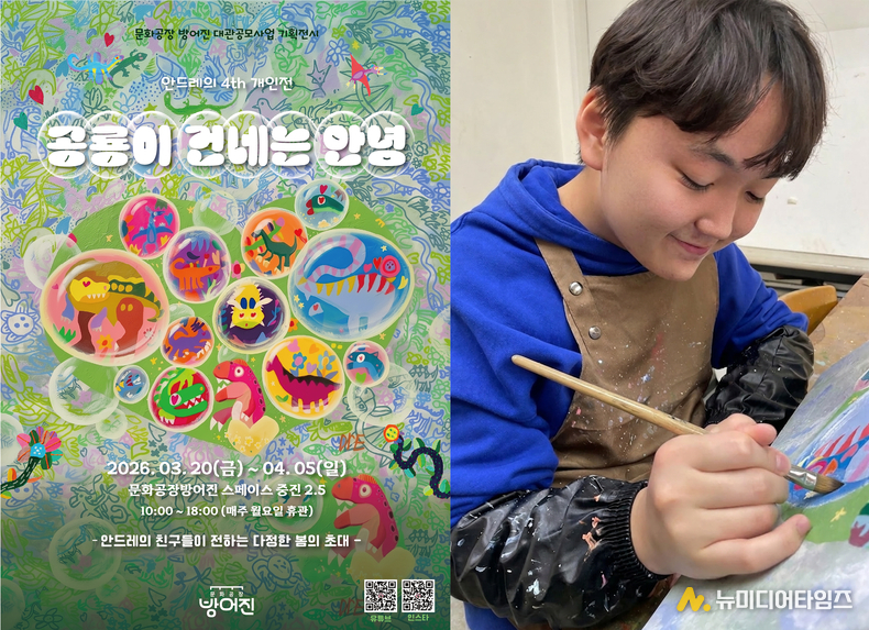 울산 동구에서 창작 활동을 이어오고 있는 학생 작가 안드레(15)가 네 번째 개인전 ‘공룡이 건네는 안녕’을 개최한다. 전시는 3월 20일부터 4월 5일까지 문화공장 방어진 내 전시공간 스페이스 중진 2.5에서 열린다.