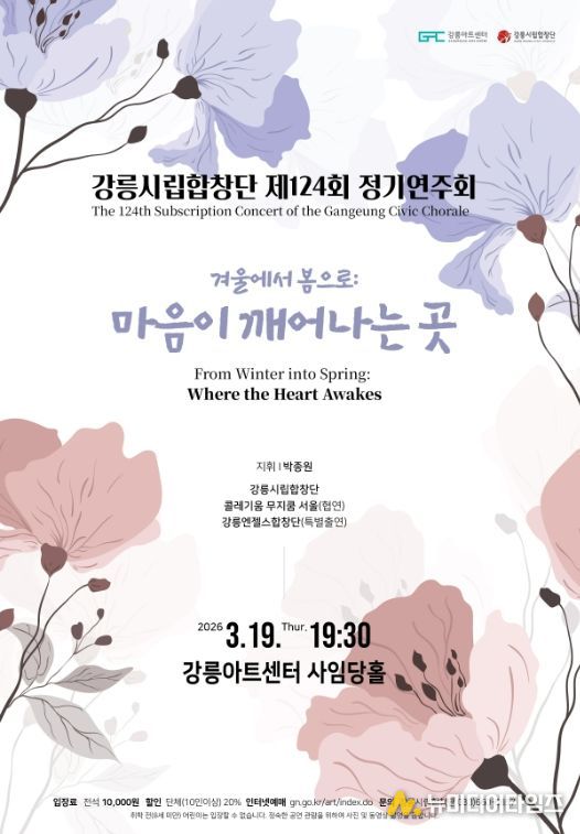 강릉시립합창단은 오는 19일 19시 30분 강릉아트센터 사임당홀에서 제124회 정기연주회를 개최한다.