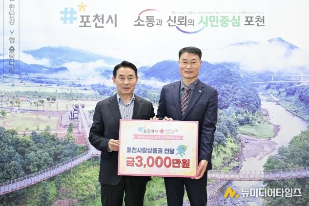 포천시는 지난 16일 포천시장 집무실에서 시민들의 헌혈 참여를 장려하고 생명나눔 문화를 확산하기 위해 대한적십자사 서울동부혈액원에 포천사랑상품권을 전달했다.