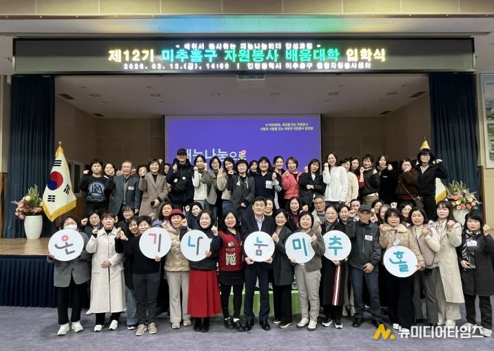 인천 미추홀구종합자원봉사센터(센터장 유중형)는 지난 13일 미추홀구청 대회의실에서 ‘2026 미추홀구 자원봉사 배움 대학 입학식’을 진행했다.
