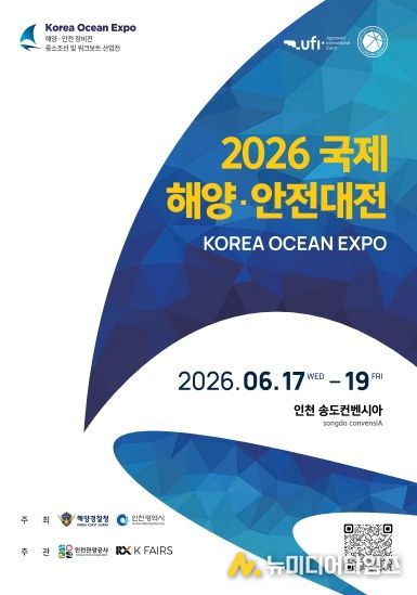 인천관광공사(사장 유지상)는 수도권 유일의 해양특화전시회‘2026 국제해양․안전대전(KOREA OCEAN EXPO 2026)’이 오는 6월 17일부터 19일까지 3일간 인천 송도컨벤시아에서 개최된다고 밝혔다.