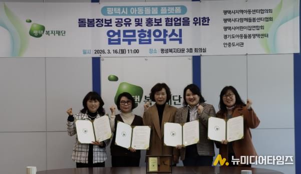 평택복지재단은 2026년 3월 16일 팽성복지타운에서 평택시 관내 아동돌봄 관련 5개 유관기관과 '평택시 아동돌봄 플랫폼'의 안정적인 운영 및 활성화를 위한 업무협약(MOU)을 체결했다.