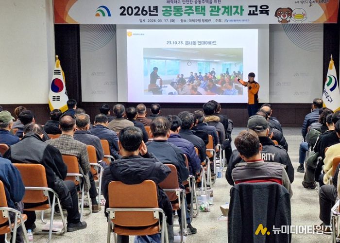 대전 대덕구는 17일 구청 청렴관에서 공동주택 경비책임자와 시설물 안전관리자 등 100여 명을 대상으로 ‘2026년 공동주택 관계자 교육’을 진행했다.