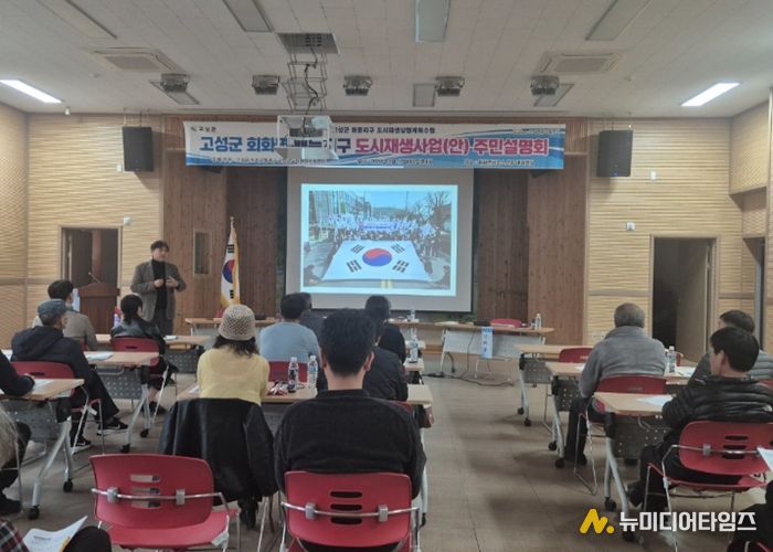 고성군은 3월 17일 회화면사무소에서 배둔지구 주민협의체 회원 및 주민 40여 명을 모시고 2026년 공모 예정인 배둔지구 도시재생사업 주민설명회를 가졌다.