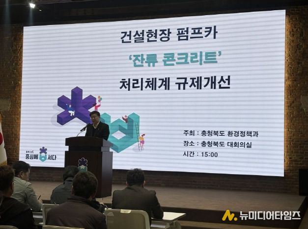 충북도가 17일 건설·펌프카협회 및 시군 담당 공무원 등 100여 명이 참석한 가운데 ‘펌프카 잔류 콘크리트 처리체계 규제개선’ 설명회를 개최했다.