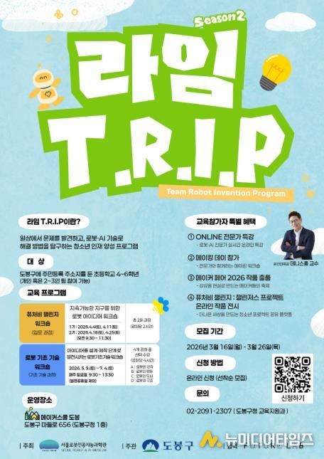 서울 도봉구가 서울로봇인공지능과학관(RAIM)이 주최하는 '2026년 RAIM T.R.I.P(동행 로봇 발명프로그램)' 참여 자치구로 선정됐다고 밝혔다.