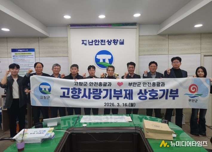 고창군 안전총괄과와 부안군 안전총괄과 직원들은 지난 17일 고향사랑기부제의 활성화와 지역 간 상생을 도모하기 위해 고향사랑 상호기부에 동참했다.