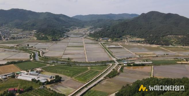 구미시는 무을면 웅곡리 일원에 2023년부터 총사업비 16억5천만원을 투입해 ‘경북형 혁신 농업타운’ 조성사업을 추진하고 있다. 참여농가 61호, 54ha 규모다. 개별 농가 중심의 관행 농업에서 벗어나 마을 법인이 위탁 영농을 수행하고 수익을 배분하는 공동영농 모델을 도입했다.
