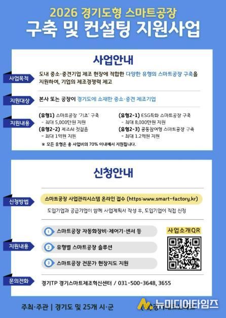 수원특례시가 경기도와 함께 ‘2026년 경기도형 스마트공장 구축 및 컨설팅 지원사업’ 참여 기업을 공모한다. 경기도 22개 시군 소재 중소제조기업을 지원하는데, 수원시 기업은 4개사를 선정할 예정이다.