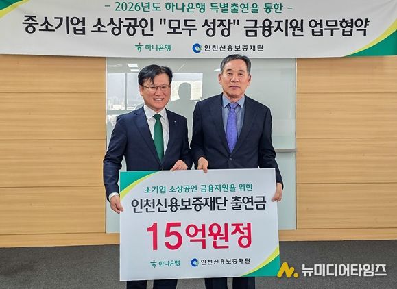 인천신용보증재단은 하나은행과 함께 인천 지역 중소기업과 소상공인의 안정적인 자금 조달을 지원하기 위한 '중소기업·소상공인 “모두 성장” 금융지원 업무협약'을 체결했다고 밝혔다.