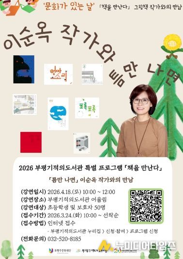 이희수 부평구문화재단 도서관본부장은 “그림책 작가와 직접 만나는 경험을 통해 어린이들이 책과 더욱 가까워지고 독서의 즐거움을 느끼는 계기가 되기를 바란다”며 “앞으로도 ‘문화가 있는 날’ 취지에 맞춰 다양한 독서문화 프로그램을 지속적으로 마련하겠다”고 말했다.