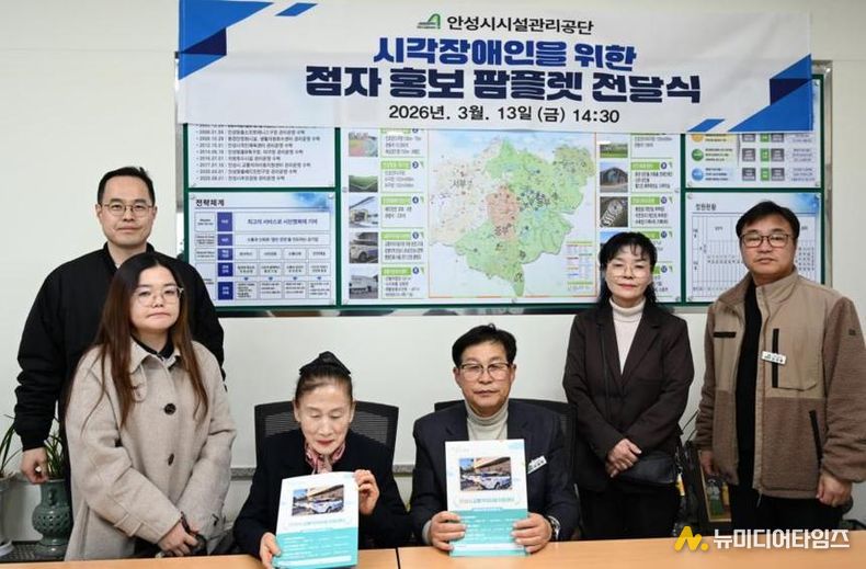 안성시시설관리공단은 지난 13일 안성시 시각장애인협회에 시각장애인의 교통정보 접근성 향상을 위한 점자 홍보물(팜플렛)을 전달했다.
