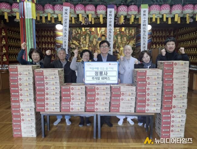 가평 청룡사는 최근 지역의 소외된 이웃들에게 도움이 되길 바라는 마음으로 청평면 행정복지센터에 즉석밥 60박스를 기탁했다.