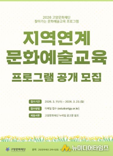 이번 공모를 통해 약 10개 내외의 단체 또는 그룹이 선정되며, 프로그램은 4월부터 10월까지 운영될 예정이다. 접수 방법 및 제출 서류 등 자세한 사항은 고양문화재단 누리집에 게시된 공고문에서 확인할 수 있다.