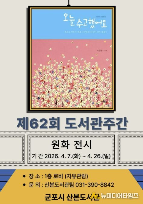 군포시 산본도서관은 도서관주간을 맞아 시민들의 독서문화 확산과 책을 통한 공감의 시간을 마련하기 위해 작가와의 만남, 북토크, 원화전시 등 다양한 프로그램을 운영한다.