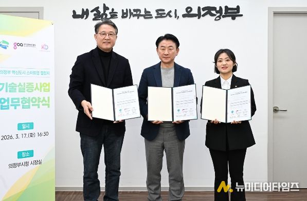 의정부시는 3월 17일 시청 시장실에서 지역 스타트업 ㈜강단스튜디오, 경기콘텐츠진흥원과 기술실증(PoC) 사업 업무협약을 체결하고, 스타트업 지원과 공공 혁신을 위한 협력 체계 구축에 나섰다.