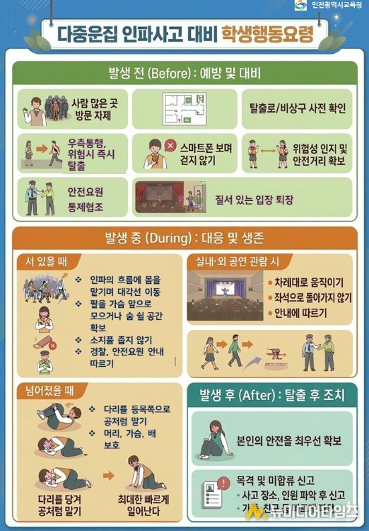 시교육청 관계자는 "학생들의 안전이 무엇보다 최우선"이라며 "경찰청 등 유관기관과 협력해 대규모 인파 밀집 등 다양한 위기 상황에 선제적으로 대응하고 사고 예방에 최선을 다하겠다"고 말했다.