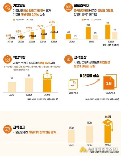 서울시 조사 결과, 올해 대학에 합격한 서울런 학생 914명 중 주요 대학‧학과 합격자는 전년 대비 21%(2025년 63명→ 2026년 76명) 늘어난 것으로 나타났다.